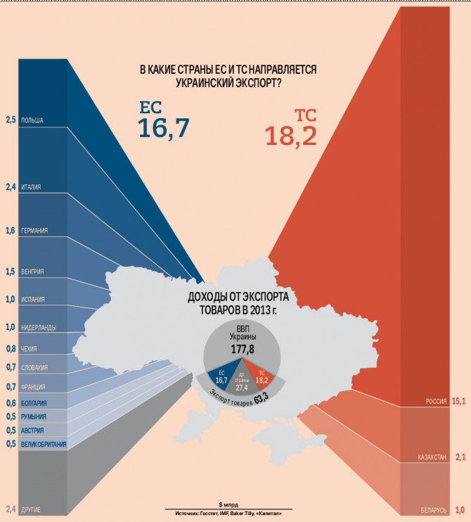 Also, there is no need to adapt to the European market for producers of ferrous metals, one fourth of which are exported to the EU. The situation is similar in the mineral products sector (35% of exports goes to the EU), as well as the textile industry (67%). However, many sectors of the Ukrainian economy are still not ready to supply products to Europe. Up until now, they have been selling it mainly to member countries of the Customs Union, whose standards differ from those in Europe.