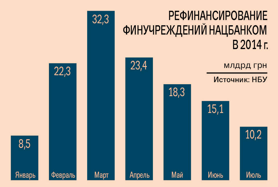 If the NBU forces the financial institutions to repay loans in such conditions, they will not have the money to settle accounts with depositors and the regulator will be forced to declare them insolvent. In order to repay the depositors the Deposit Guarantee Fund will have to again borrow from the NBU, since it won’t have enough funds to do so. In the middle of June the DGF borrowed UAH 4.2 bn from the NBU. According to the DGF, over the first half of 2014 at total of UAH 3.2 bn was paid out as compensations.