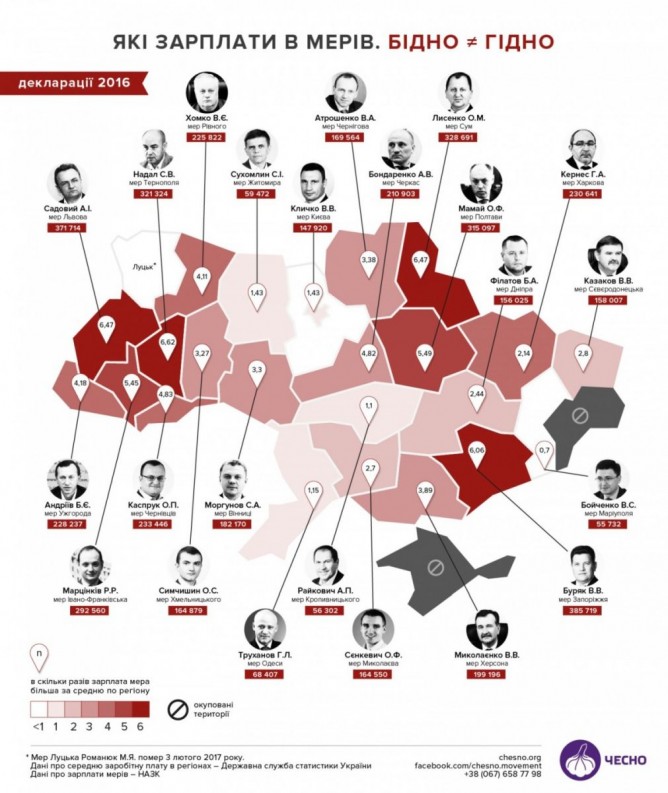 В сети появилась информация относительно зарплат украинских мэров за 2016 год.