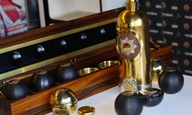 Как передает местный телеканал TV-2, это шестилитровая бутылка водки, сделанная из 3 кг золота, 3 кг серебра, кожи из первого автомобиля Монте-Карло. А пробка была украшена бриллиантами. Также известно, что бутылка появлялась в эпизоде сериала «Карточный домик».