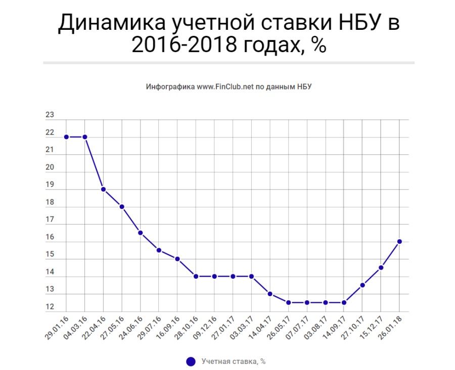 Национальный банк Украины поднял учетную ставку до 16% годовых, пишет FinClub.