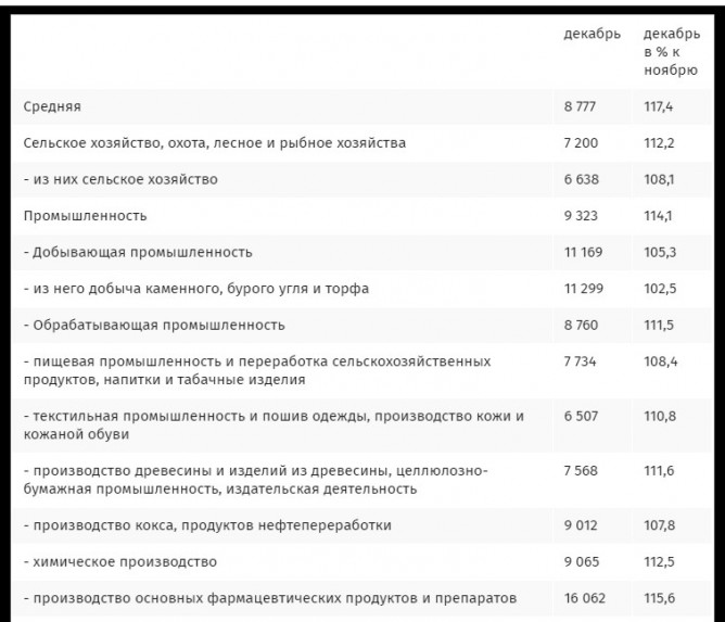 В декабре 2017 года средняя заработная плата увеличилась по сравнению с ноябрем на 17,4% (до 8 777 гривен в месяц). Об этом передают Українські Новини, ссылаясь на Государственную службу статистики.