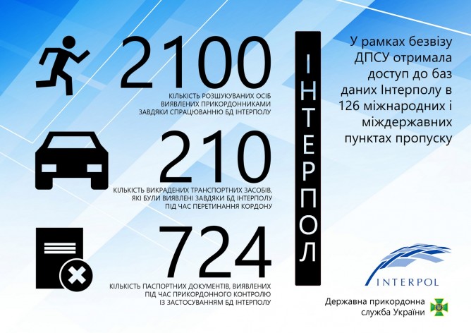 С момента получения доступа к базам данных Интерпола в рамках безвизового режимы с Евросоюзом украинские пограничники задержали 2,1 тыс. человек, которые находились в международном розыске.