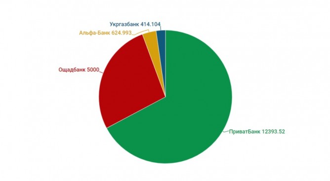 Крупнейший должник — ПриватБанк, который должен вернуть НБУ 12,4 млрд грн. В этот список вошли и другие государственные банки: Ощадбанк (5 млрд грн) и Укргазбанк (414 млн грн).