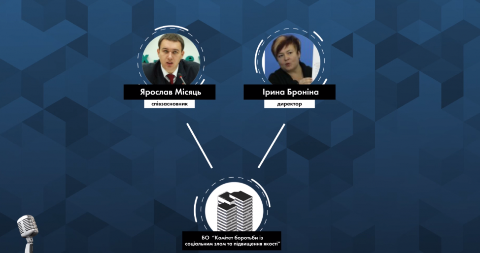 Скандальная ОО основана Русланой Брониной. А среди руководителей организации выходец из Харькова Анатолий Месяц. Он — бизнес-партнер Брониной по нескольким компаниям и подписывал меньшей мере одно из писем от «благотворительного фонда» в адрес «Дельта Вилмар».