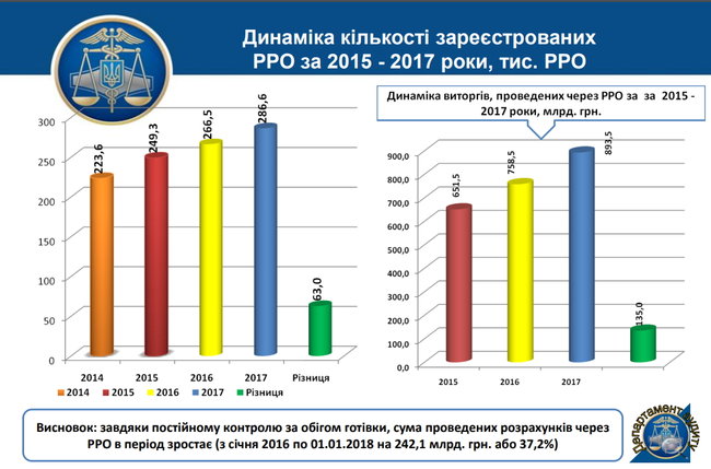 Количество регистраторов расчетных операций (РРО) в 2017 году выросло на 20 тыс. (на 7%) — до 286 тыс. Об этом сообщает Государственная фискальная служба (ГФС).