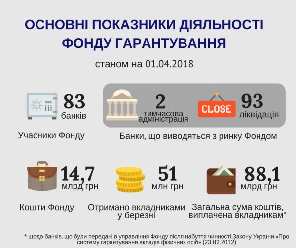 Сумма средств, выплаченная вкладчикам неплатежеспособных банков и банков, которые ликвидируются по состоянию на 1 апреля составила 88,089 млрд грн.