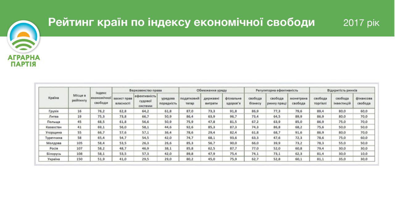 Кроме того, Украина стала 150-й в мире по уровню экономической свободы.