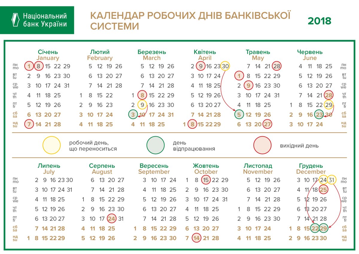 Национальный банк напоминает о регламенте работы банковской системы Украины в связи с переносом рабочих дней.
