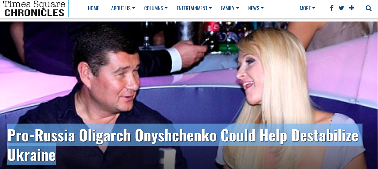 Американское издание Times Square Chronicles опубликовало материал «Pro-Russia Oligarch Onyshchenko Could Help Destabilize Ukraine», в котором журналист Винсент Стил проанализировал прошлое беглого депутата и бизнесмена Александра Онищенко. Напомним, в Украине его обвиняют в хищении более $1,5 млрд государственных денег. Онищенко последние годы скрывается за границей и якобы готовит различные компроматы на украинскую власть. По факту, таким образом он просто пытается избежать наказания и выиграть от политического расклада в Украине, пишет издание.