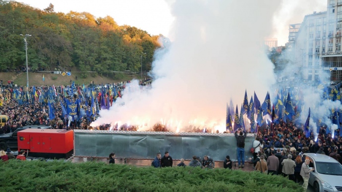 Участники зажгли файеры и скандировали: «Пам’ятай, чужинець — тут господар українець».