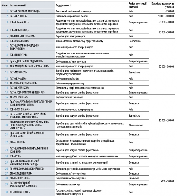 Второе место с более чем 70 тыс наемных работников заняла «Укрпошта». Тройку лидеров замыкает «АТБ-маркет» — более 50 тыс сотрудников.
