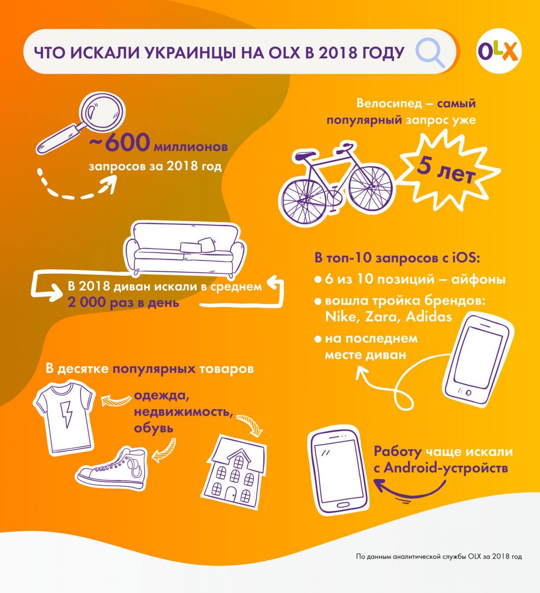 Аналитики OLX также сравнили запросы пользователей iOS и Android. Оказалось, что оба рейтинга сильно отличаются. Объединяет владельцев различных устройств только одно - в 2018 году все они хотели диван.