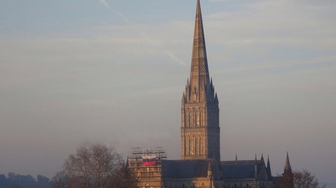 На строительных лесах, установленных у Солсберийского собора, в ночь на 17 февраля неизвестные вывесили российский флаг. Соответствующие фото в Twitter начали публиковать местные жители.
