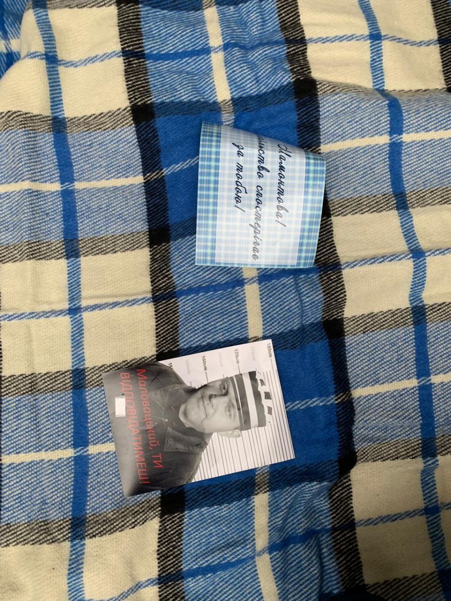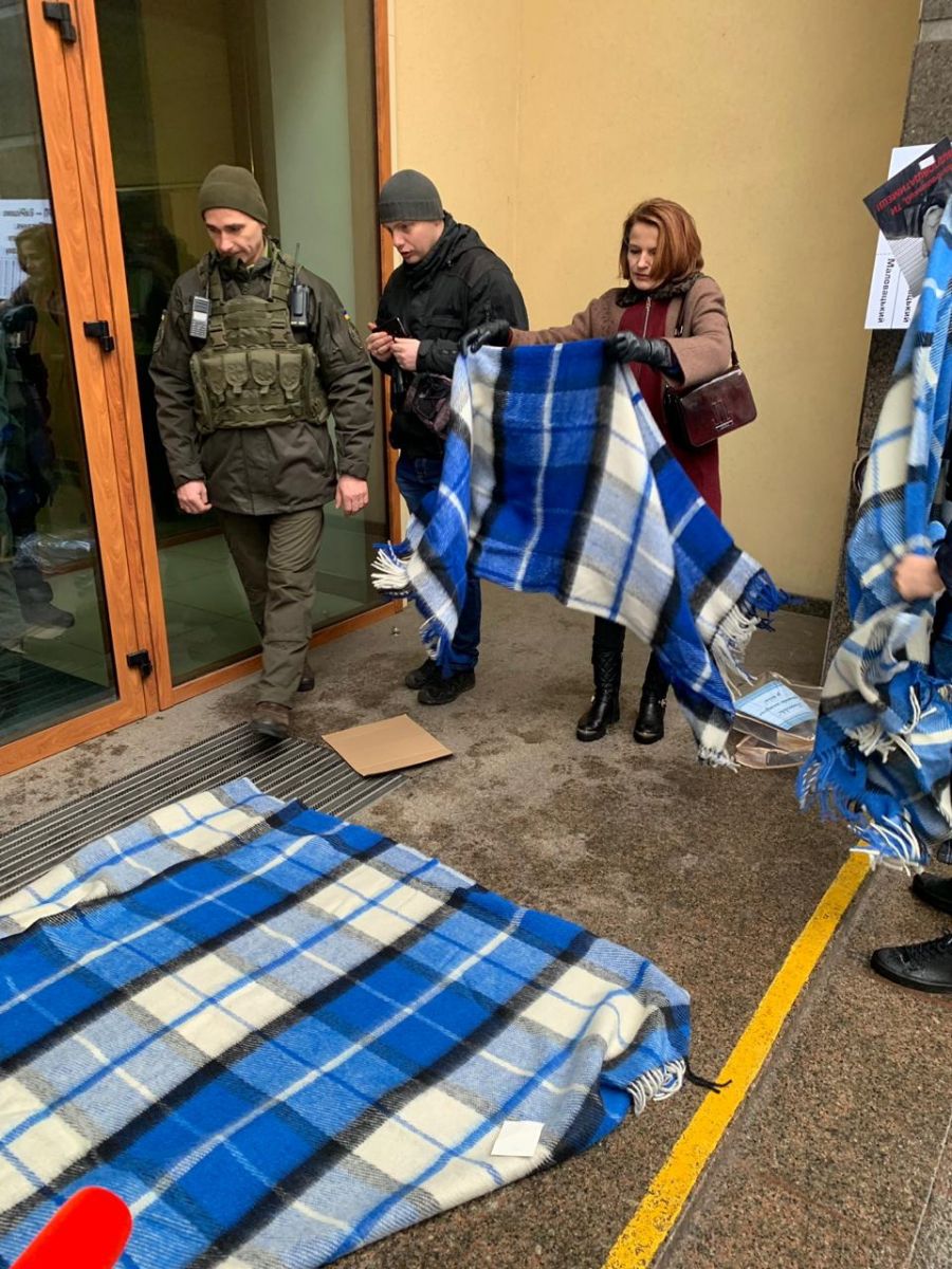 На митинге против вмешательства Высшего совета правосудия в работу судей, профсоюзы передали членам ВРП, а именно Алексею Маловацкому одеяло Насирова, как символ того, что за преступления перед Законом нужно отвечать.