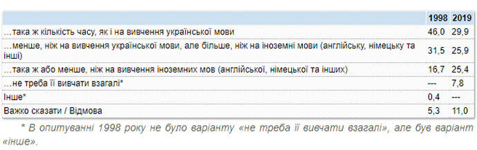 Количество граждан, которые поддерживали равноправное изучения украинского и русского языка в школах, за 20 лет уменьшилось на 16%, однако все еще составляет около 30%. Об этом свидетельствуют данные опроса, проведенного Киевским международным институтом социологии в марте.