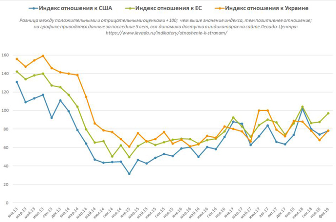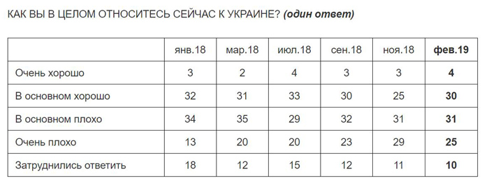 Отметим, что по данным украинсого опроса в феврале 2019 года количество украинцев, которые хорошо или очень хорошо относятся к России, выросло на 9 процентных пунктов и составило 57%.