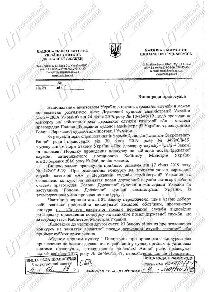 «Я резко выступил против таких незаконных действий. Ведь конкурс можно объявлять только на вакантную должность, что подтверждено соответствующими выводами Национального агентства по вопросам государственной службы Украины, профильным комитетом Верховной Рады Украины и Научно-экспертным управлением ВРУ», — прокомментировал председатель ГСА.