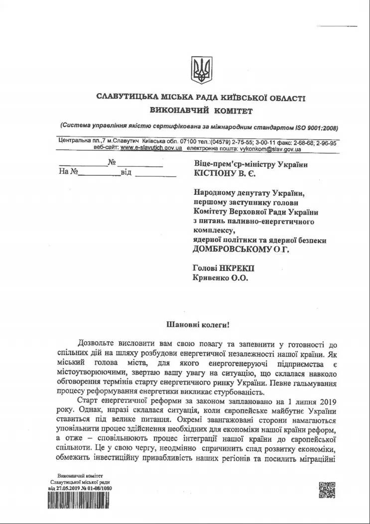 «Старт энергетической реформы согласно закона запланирован на 1 июля 2019 года. Однако, сейчас сложилась ситуация при которой европейское будущее Украины ставится под вопрос. Некоторые заангажированные стороны пытаются замедлить процесс реализации необходимых стране реформ, тормозят процесс интеграции страны в европейское сообщество», — указано в письме.