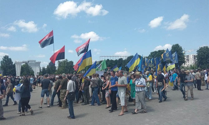 Участие в акции протеста приняли представители «Нацкорпуса», которые образовали коридор, чтобы люди, которые шли во Дворец, не имели возможности избежать «коридора позора». Поэтому перед входом образовалась давка.