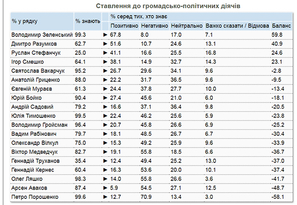 Почти 70% жителей Украины положительно воспринимают президента Владимира Зеленского как политика, столько же негативно относятся к бывшему главе государства Петру Порошенко, свидетельствуют данные опроса, проведенного Киевским международными институтом социологии (КМИС).