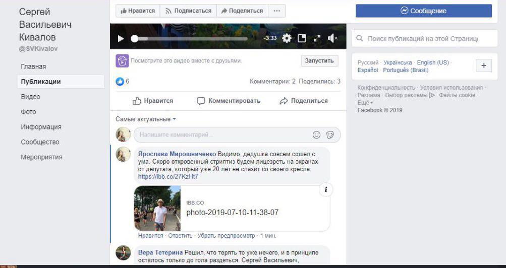 "Видимо, дедушка совсем сошел с ума. Скоро откровенный стриптиз будем лицезреть на экранах от депутата, который уже 20 лет не слазит со своего кресла",- написал один из пользователей facebook.