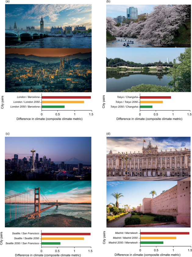 Ученые проанализировали 520 крупных городов мира и проверили, будет ли их климат в 2050 году больше напоминать собственные климатические условия или современные условия других городов в различных биоклиматических регионах.