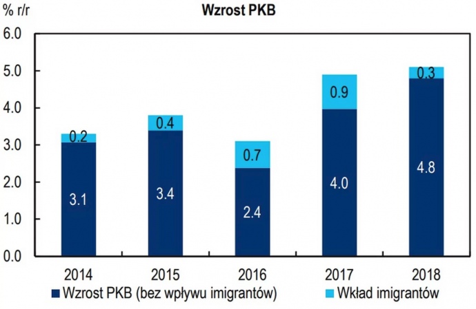 Вклад иммигрантов, в том числе украинских, в рост ВВП Польши составил в среднем 0,5% в год в течение последних пяти лет.