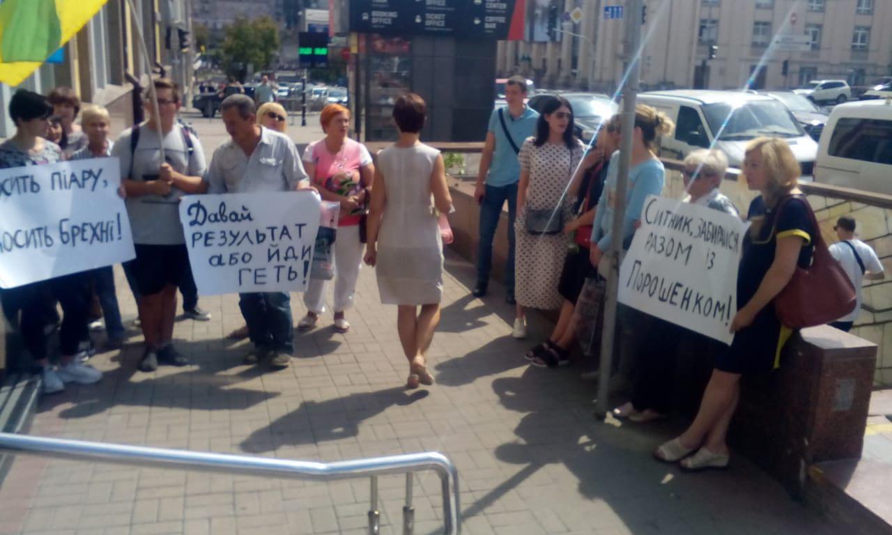 Возле здания агентства «Укринформ», где сегдня в 12:00 началась презентация отчета о деятельности НАБУ за первое полугодие 2019 года, проходит пикет активистов, недовольных работой органа и его руководителя Артема Сытника.
