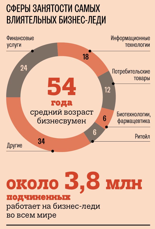 На плечах этих 50 хрупких, но волевых женщин лежит большая ответственность — управление огромным количеством персонала. Так, совокупное число сотрудников компаний, которыми управляют женщины, вошедшие в рейтинг, сейчас составляет около 3,8 млн человек. Среди них самое большое количество подчиненных (434 тыс.) имеет Вирджиния Рометти, а наименьшее (0,5 тыс.) — глава сингапурской инвестиционной компании Temasek Holdings Хо Чин.