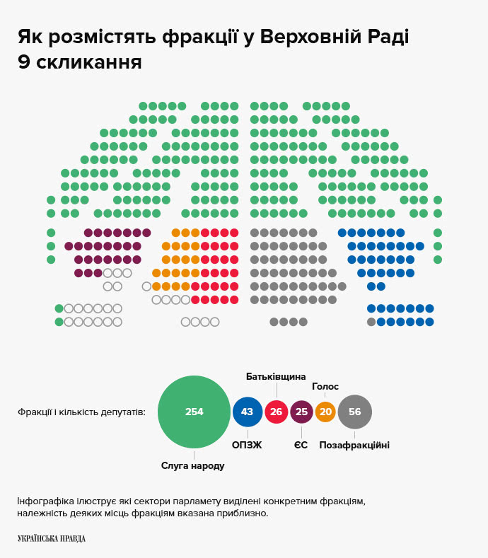 Издание отмечает, что в предыдущих парламентах фракции большинства всегда оставляли небольшой сектор впереди для фракций меньшинства. Рассаживали «лучами» — чтобы к трибуне имели доступ все фракции.
