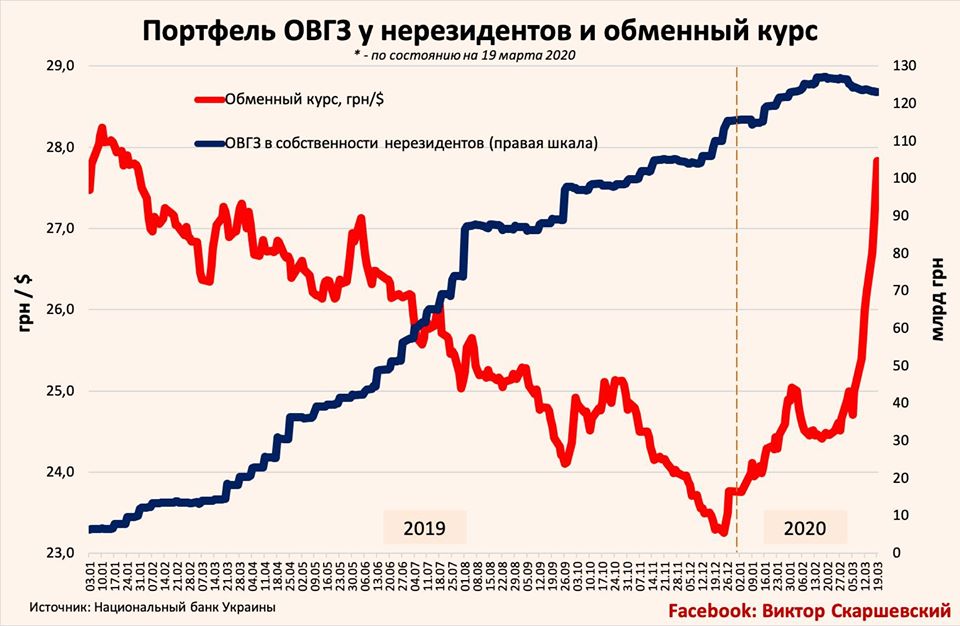 Портфель ОВГЗ нерезидентов-спекулянтов с 28 февраля уменьшился с $5,2 млрд до $4,4 на утро 20 марта.
