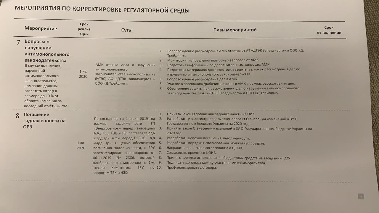Сергей Лещенко в своем Телеграм-канале опубликовал секретные документы из офиса компании Рината Ахметова ДТЭК под названием «Мероприятия по корректировке регуляторной среды».