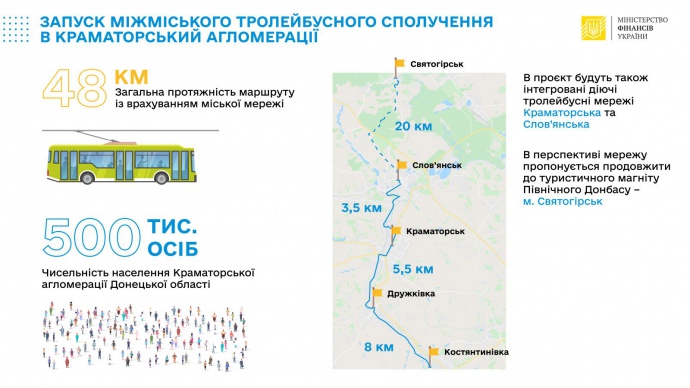 Планируется, что троллейбусная линия протяженностью 48 километров свяжет Славянск, Краматорск, Дружковку и Константиновку.