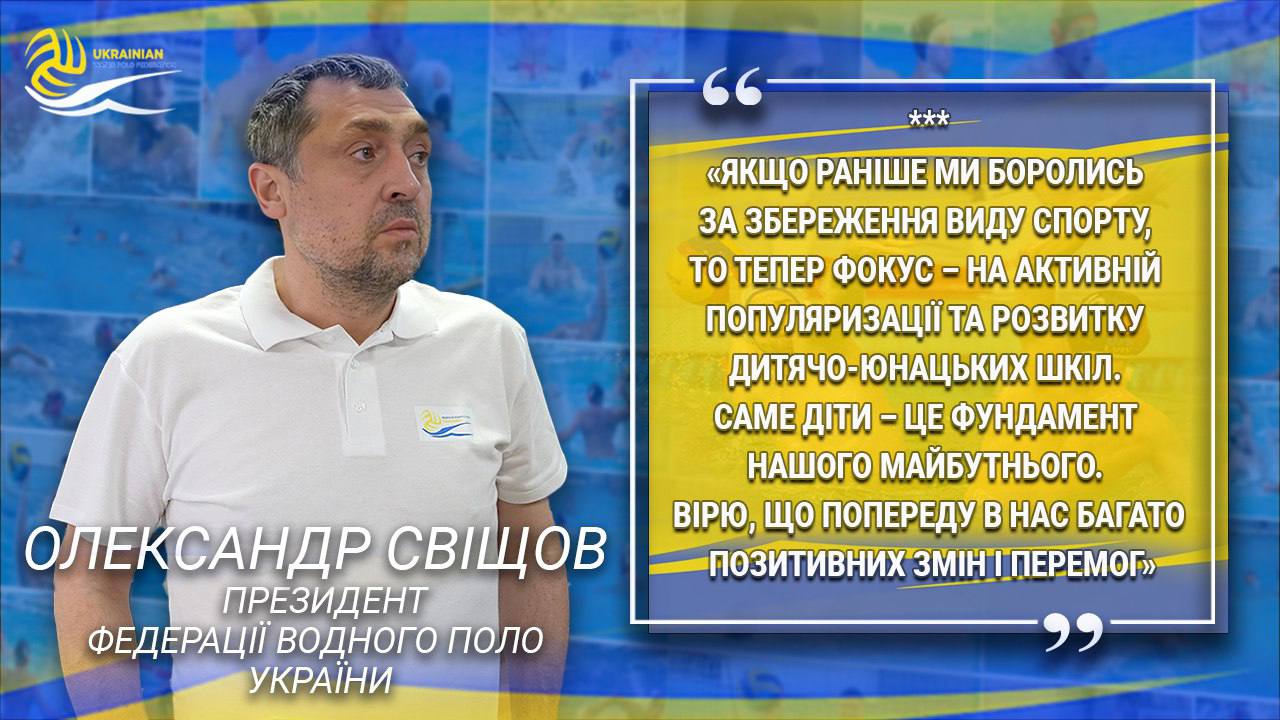 Слова та дії Олександра Свіщова демонструють чітку стратегію: створення умов для розвитку спорту, підтримка молоді та міжнародне визнання українського водного поло.