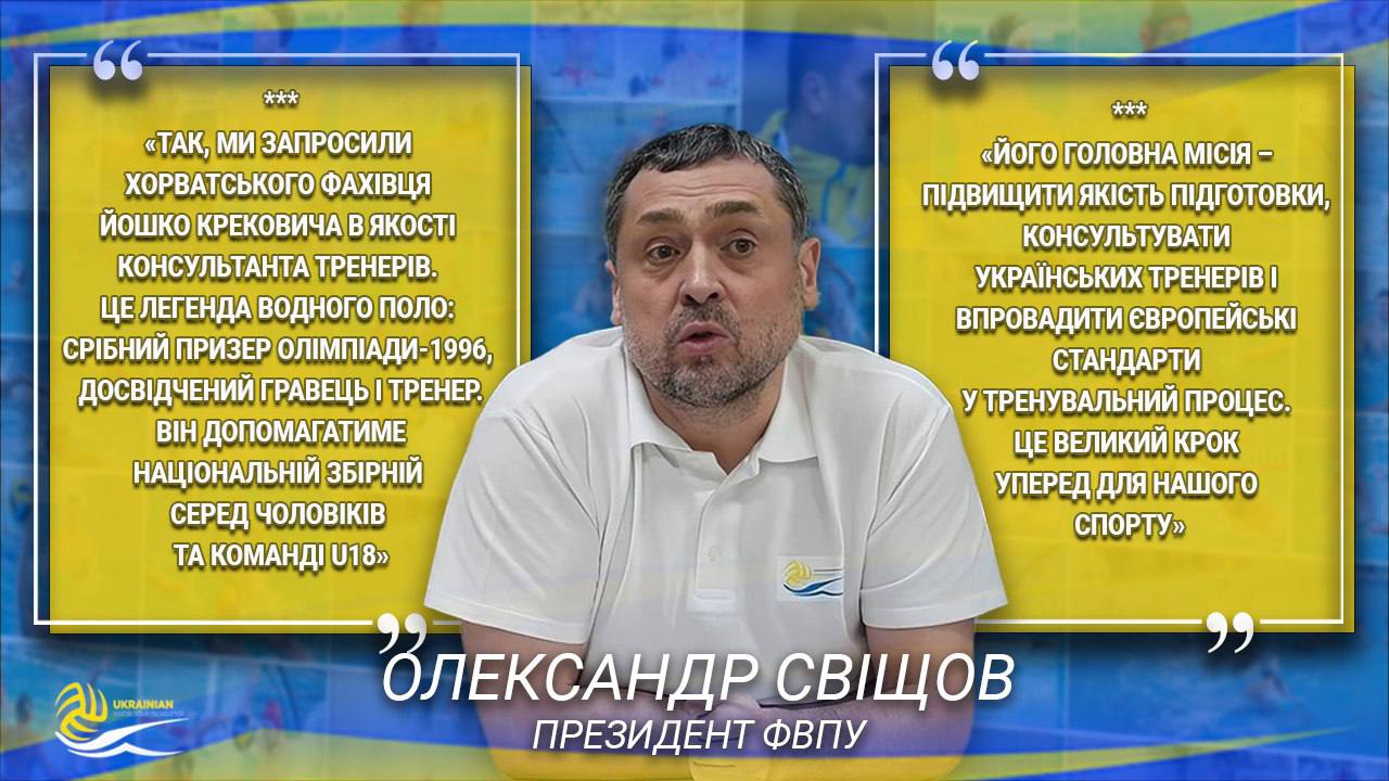 «Це великий крок уперед для нашого спорту. Крекович допоможе нам впровадити європейські стандарти в підготовку спортсменів», — підкреслив Свіщов.
