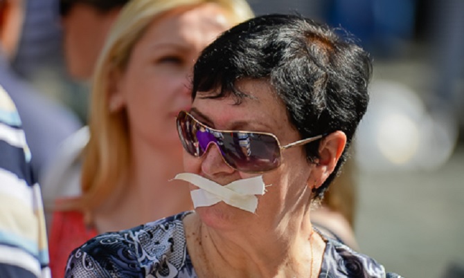 Пикетчики держат плакаты с надписями «Что нам теперь читать?», «Недопустим давления на СМИ» и скандируют «Верните нам «Вести».