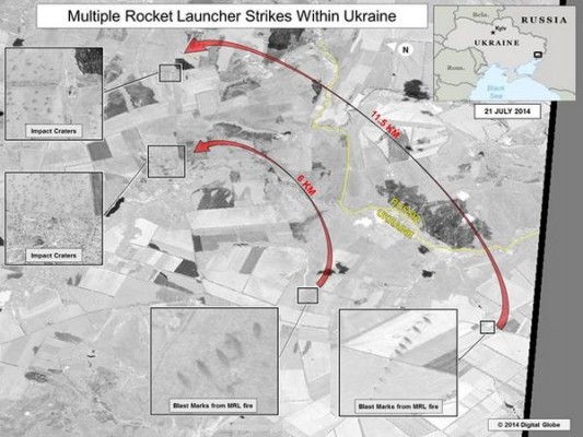 «Снимки: доказательства, что русские войска обстреляли через границу украинские Вооруженные силы, и сепаратисты использовали артиллерию, предоставленную им Россией», — написал он под фотографиями.