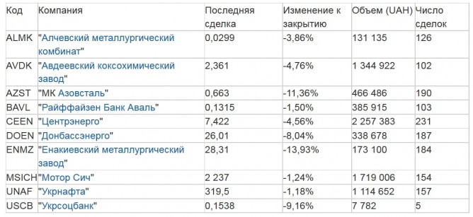 Объем торгов составил 45,983 млн грн, из них на фондовом рынке — 30,983 млн грн.