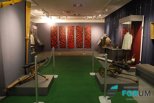 Экспонаты, повествующие непосредственно о войне, — оружие, военная амуниция, посуда, одежда бойцов.