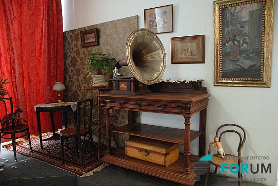 Среди экспонатов также — фонограф Эдисона, съемочная камера фирмы Пате.