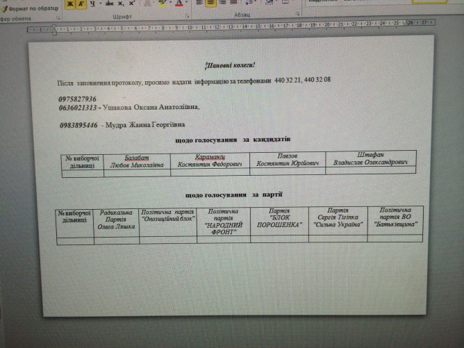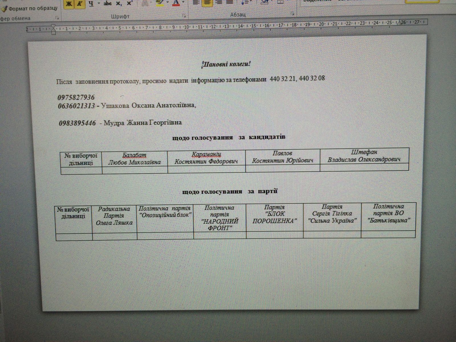 Так, член участковой избирательной комиссии от партии «ЗАСТУП» получил на электронную почту письмо, в котором от него требовали после заполнения протокола предоставить по телефону информацию о результатах, полученных четырьмя мажоритарщиками и шестью политическими силами.