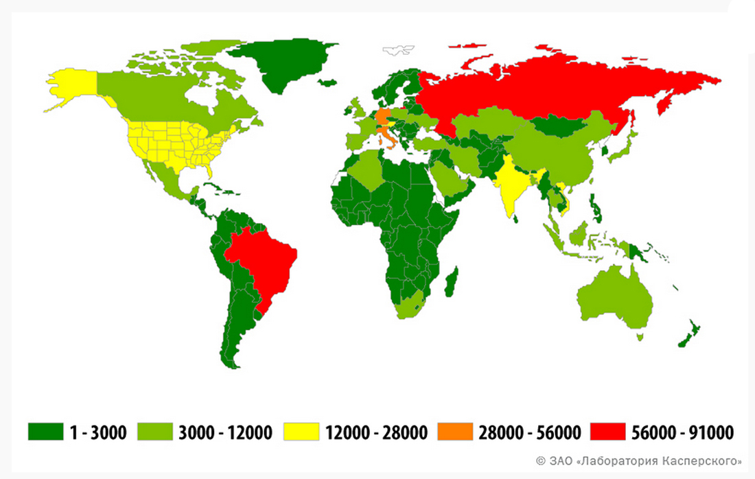 Как уточняется, среди положительных тенденций можно отметить уменьшение числа атак компьютеров финансовыми злоумышленниками — этот показатель снизился на 25% по сравнению с предыдущим отчетным периодом. Первое место по количеству таких инцидентов продолжает занимать Бразилия, за ней — Россия и Германия.