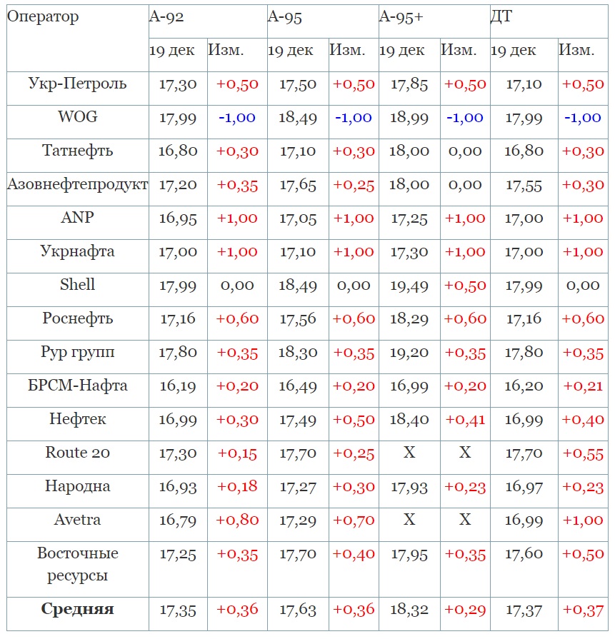 Подорожание продолжилось как в крупнейших сетях (Shell, «Роснефть», «Укр-Петроль», «БРСМ-Нафта» и др.), так и у региональных игроков («Азовнефтепродукт», «Народна», «Восточные ресурсы», «Рур Групп», «Татнефть», Route 20, Avetra и пр.).