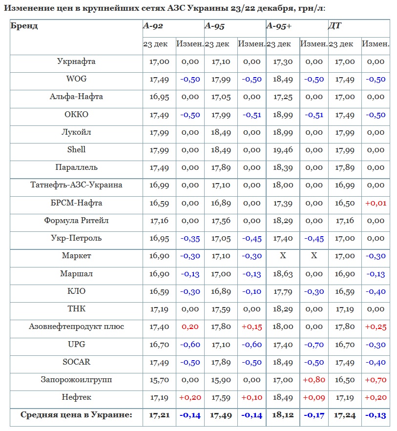 Напомним, что 16-19 декабря цены на топливо в рознице поднимались в связи с падением курса гривны к доллару.