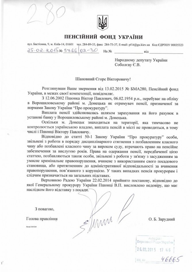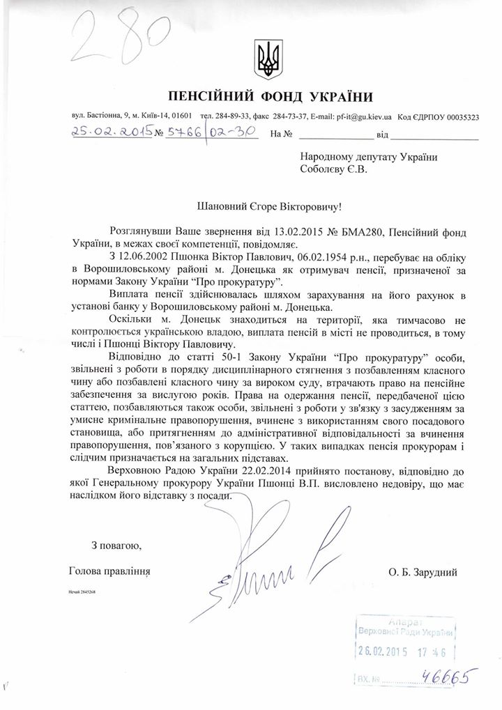 «Пшонке надо не пенсию начислять, а осудить и конфисковать его имущество», — резюмировал Соболев, добавив, что направил обращение нынешнему генпрокурору Виктору Шокину с просьбой рассказать о результатах расследования дела Пшонки.