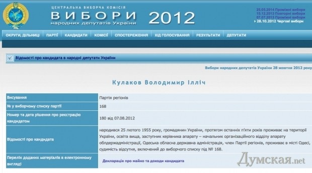 Напомним, Кулаков в 2012 году баллотировался в Верховную Раду по списку Партии регионов под номером 168.