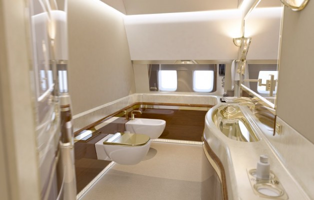 По его словам, мебель сделана из дорогой кожи, везде инкрустирована позолота, есть тренажерный зал.