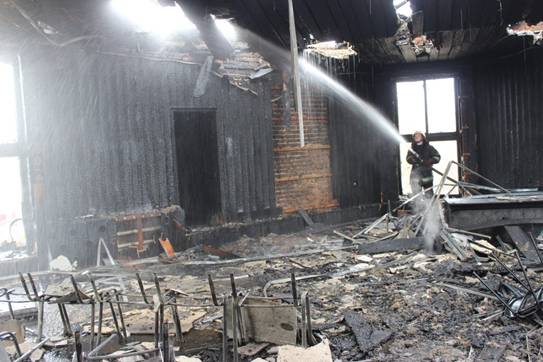 Огонь охватил крышу здания, в помещении наблюдалось сильное задымление и высокая температура.