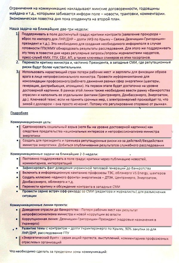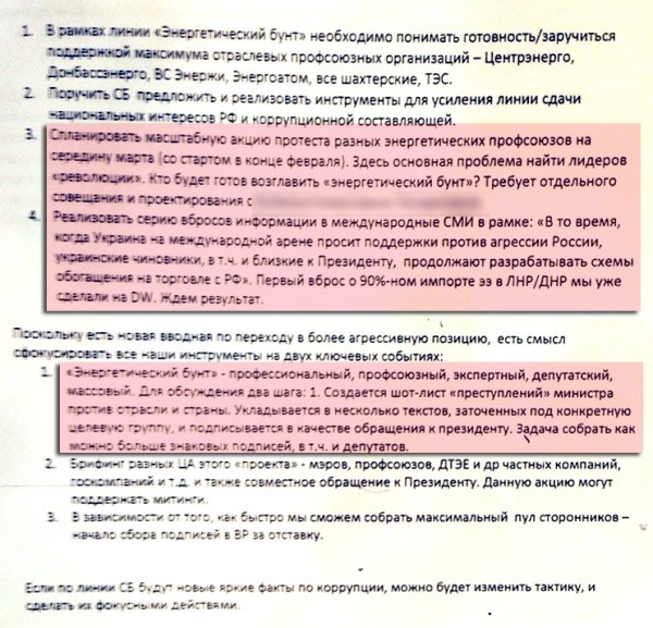 «Сдетонировать социальный взрыв, хотя бы на уровне достоверной картинки, как следствие предательства национальных интересов и непрофессионализма министра энергетики», — отмечается в документе.